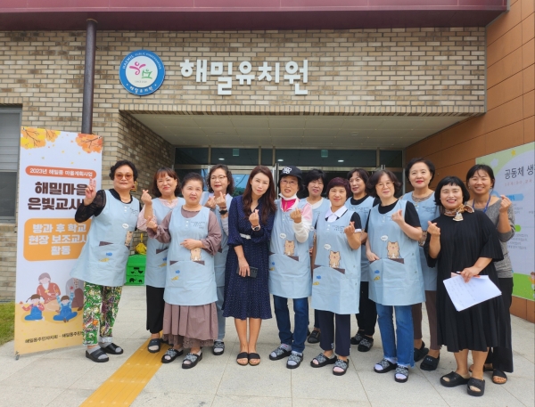 자라나는 아이들과 어르신 간 문화매개자 역할을 하기 위한 해밀마을 은빛교사단 소속 유치원·초등학교 돌봄교실 보조교사들이다.