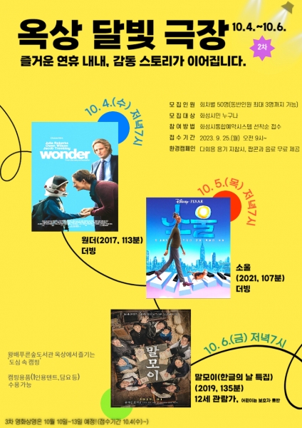 화성시 왕배푸른숲도서관, 10월 4~6일 ‘옥상 달빛 극장’ 운영