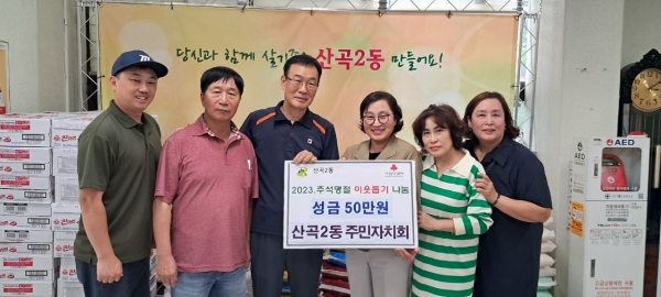 산곡2동, 동 주민자치회로부터 추석 맞이 이웃사랑 나눔 성금 전달받아