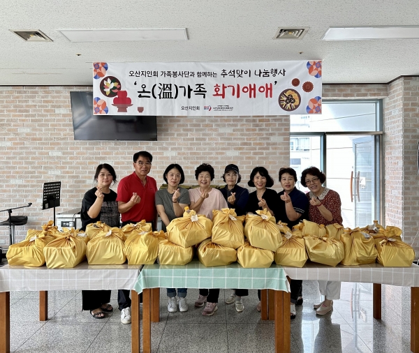 [금요저널] 오산남부종합사회복지관이 25일 추석 명절을 맞아 오산지인회 가족봉사단과 함께 ‘온가족 화기애애’ 추석맞이 나눔 행사를 진행했다.
