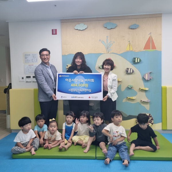 [금요저널] 시립송탄서희어린이집은 지난 21일 바자회 수익금 484,600원 전액을 평택행복나눔본부에 전달했다.