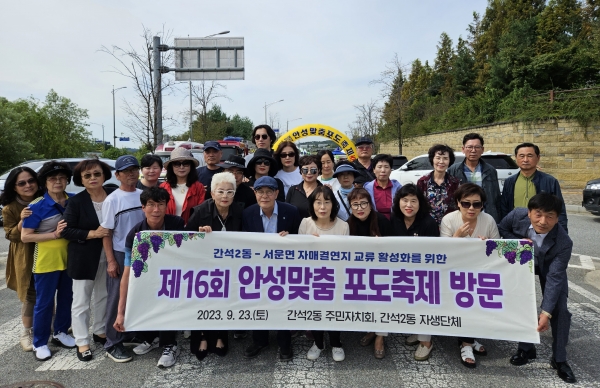 [금요저널] 인천 남동구 간석2동 행정복지센터와 동 주민자치회는 최근 자매결연지인 경기도 안성시 서운면에서 개최된 제16회 안성맞춤포도 축제에 방문했다고 27일 밝혔다.