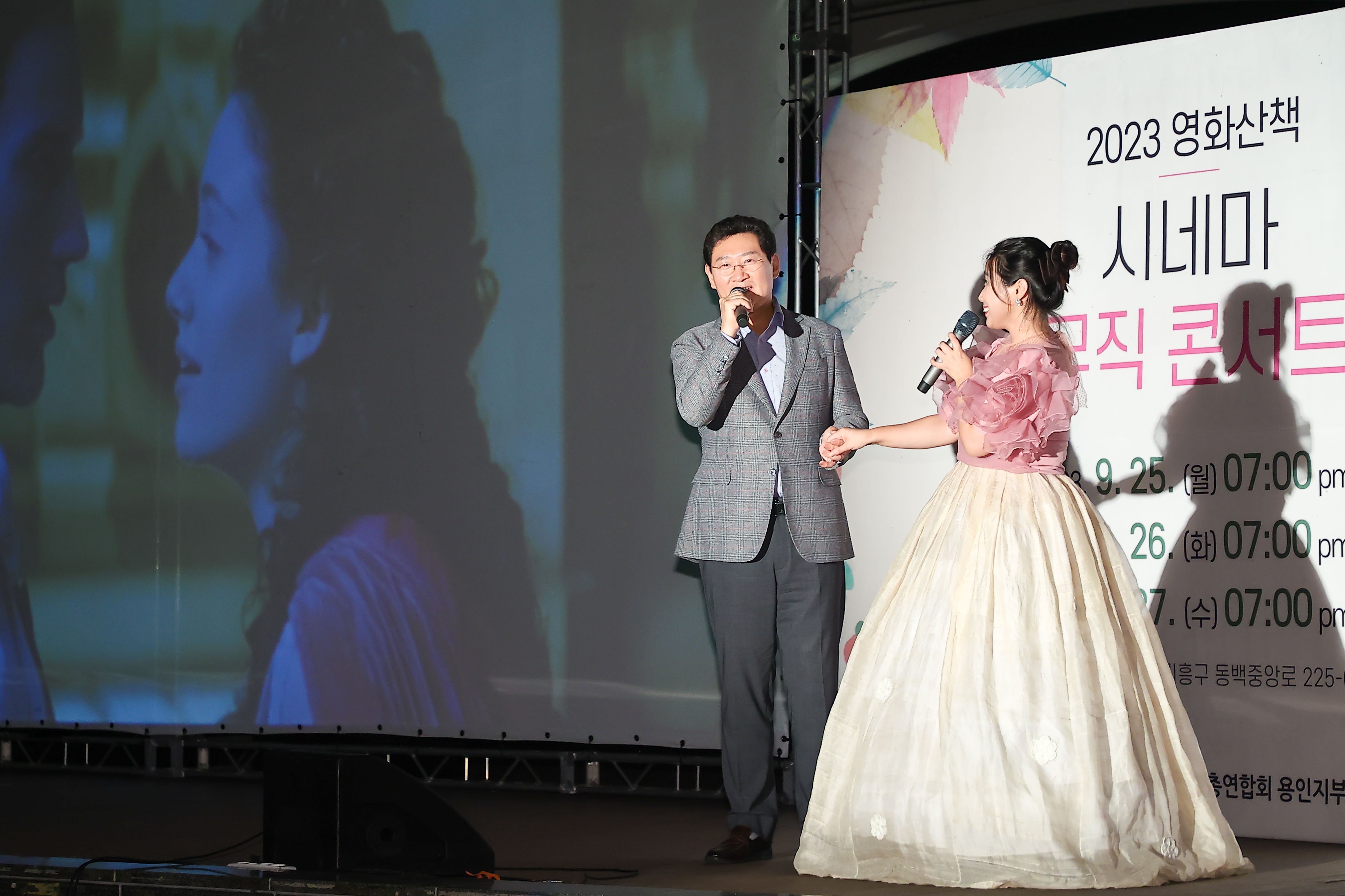 이날 행사는 한국영화인총연합회 용인지부가 주관하고 용인예총이 후원했다. 지난 25일부터 27일까지 동백호수공원에서 열린 음악회에는 성악가, 가수, 가야금 연주자 등이 30여 곡이 넘는 영화 OST, 오페라ㆍ뮤지컬 아리아들을 부르고 연주했다.