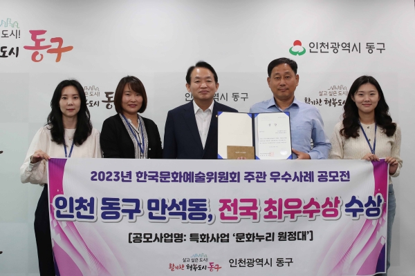 [금요저널] 인천 동구 만석동은 지난 9월 문화체육관광부 산하 한국문화예술위원회에서 주관한 통합문화이용원 현장접점 이용 우수 사례 공모전에서 전국 최우수상을 받았다고 밝혔다.