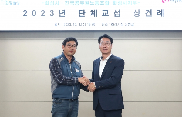 정명근 화성시장은 “노사간 상호 신뢰는 고품질 행정서비스 향상을 위해 반드시 필요하다”며 “이번 단체교섭에서 존중과 배려로 소통하고 열린 마음으로 교섭해 안전하고 행복한 일터를 만들기 위해 노력하겠다”고 말했다.