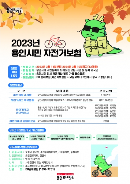 용인특례시는 지난 3월 용인특례시민을 피보험인으로 하는 ‘용인시민 자전거보험’에 가입, 운용 중이라고 5일 밝혔다.