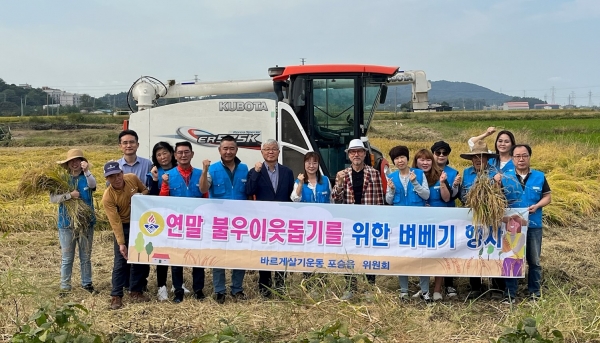 [금요저널] 평택시 포승읍 바르게살기위원회는 지난 4일 포승읍 원정리 일원에서 연말 불우이웃을 돕기 위한 ‘사랑의 벼베기 행사’를 실시했다.