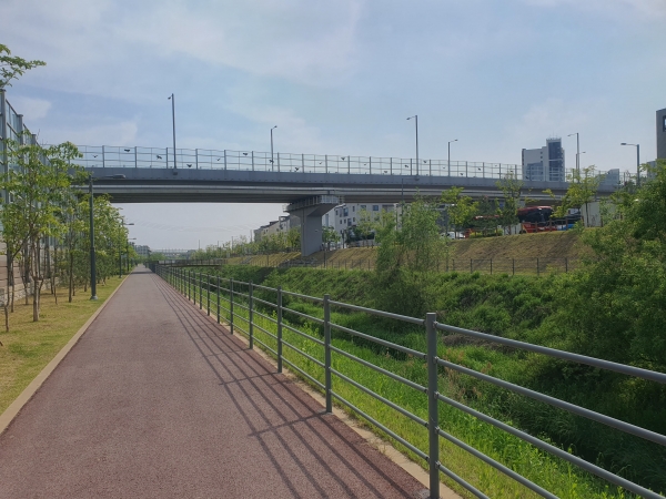 또한, 친수공간과 하천 생태계 복원 조성에 주안점을 두고 시공했으며 서정리역 등 교통의 접근성이 우수하고 기존 하폭을 17m에서 26m로 확장해 유수 소통 원활 및 통수단면 확보로 우기철 집중호우 피해를 예방했다.