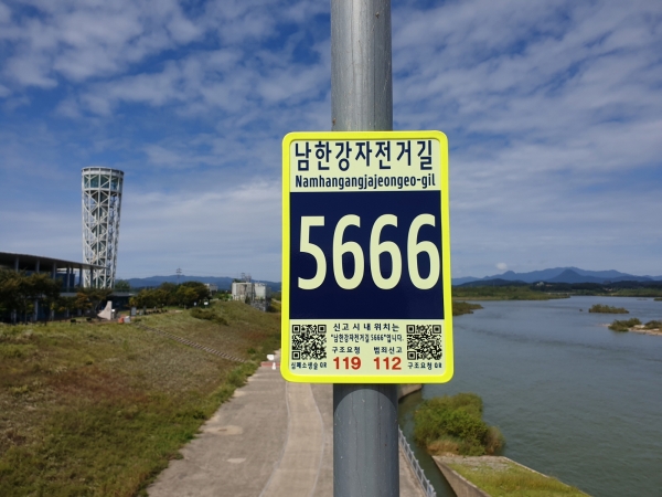 [금요저널] 여주시는 관내 남한강자전거길 일대 65개소에 긴급상황 신고 및 심폐소생술이 탑재된 QR코드와 야광 소재로 제작한 기초번호판을 설치했다.