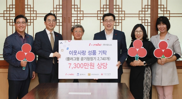 [금요저널] ㈜이오니스는 지난 9월 21일 평택 관내 저소득 노인 가구를 위해 7300만원 상당의 플러그형 공기청정기 2740개를 평택행복나눔본부에 전달했다.