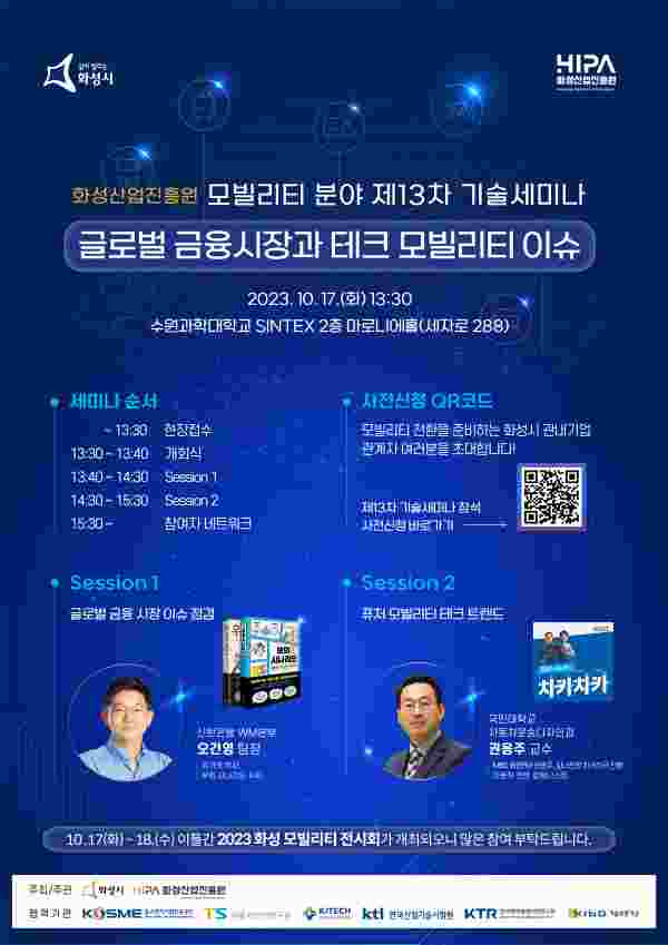 특히 세미나가 진행되는 SINTEX에서는 10월 17일부터 이틀간 ‘2023 화성 모빌리티 전시회’가 함께 개최되어 모빌리티 산업 관련 다양한 볼거리와 즐길거리가 풍성할 전망이다.