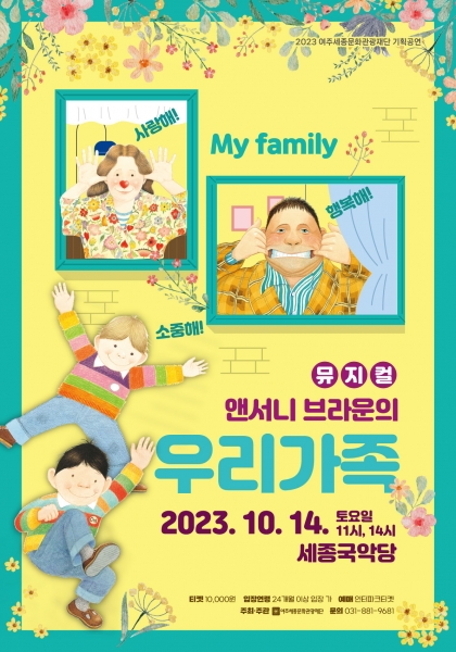 [금요저널] 여주세종문화관광재단이 오는 14일 세종국악당에서 가족뮤지컬‘앤서니 브라운의 우리 가족’을 개최한다.