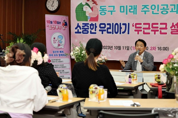 김찬진 동구청장은 임산부들과 만나 동구의 임신과 출산·육아 정책을 소개하고 임산부들이 동구에 바라는 정책과 의견을 청취하는 시간도 가졌다.