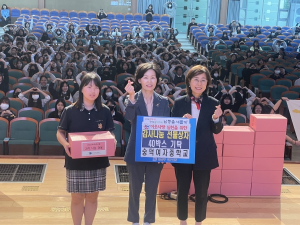 김미라 동장은 “숭덕여자중학교 학생들과 관계자분들께 감사의 마음을 전하며 후원해주신 감사나눔상자는 도움이 필요한 홀몸노인분들과 조손 부모 가정에 돌아갈 수 있도록 최선을 다하겠다”고 답했다.