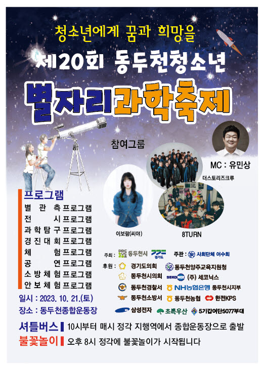 [금요저널] 동두천시가 주최하고 사회단체 어수회가 주관하는 ‘제20회 청소년 별자리 과학축제’가 오는 10월 21일에 개최된다.