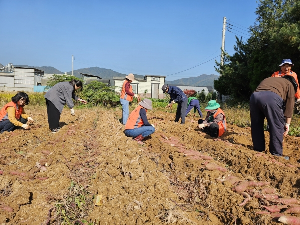 [금요저널] 신둔면주민자치회는 10월 12일 신둔면에 위치한 장동2리 마을정원에서 달달하고 따뜻한 사랑 나눔을 위한 고구마 수확 행사를 가졌다.