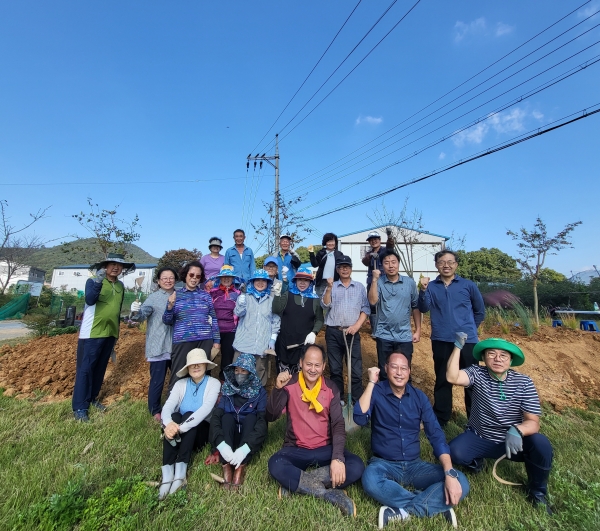 이날 행복정원단 단원과 마을주민, 관계 공무원 등 20여명이 모여 목백일홍, 써니스마라그 등의 나무와 아스타, 구절초, 바늘꽃, 황금수크령, 핑크뮬리, 꿩의비름 등의 꽃을 심었다.