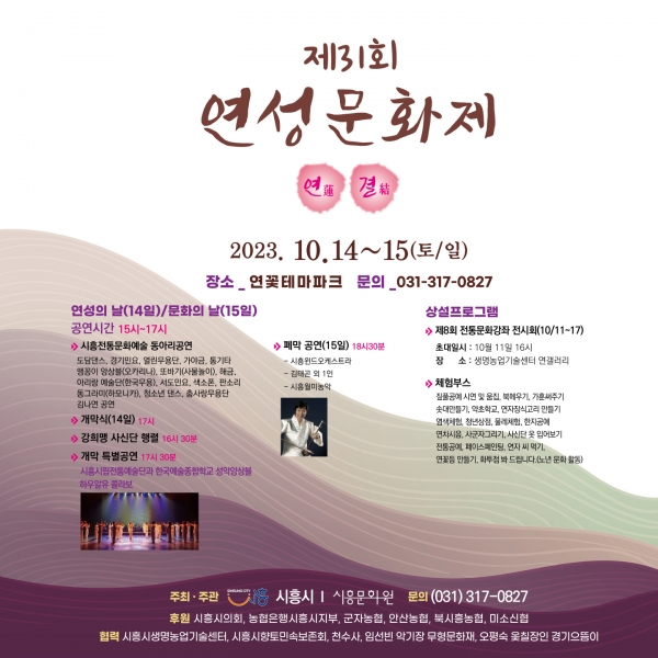 [금요저널] 시흥시가 주최하고 시흥문화원이 주관하는 ‘제31회 연성문화제’가 오는 14일부터 15일까지 이틀간 시흥연꽃테마파크에서 개최된다.