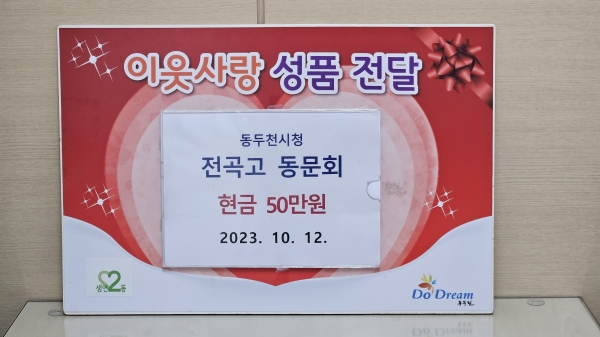 [금요저널] 동두천시청 전곡고 동문회는 지난 12일 어려운 이웃을 위해 써달라며 생연2동 행정복지센터에 성금 50만원을 기부했다.