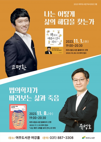 [금요저널] 여주시 평생교육과 여주도서관에서는 오는 11월 1일과 8일 양일간 방송인 고명환과 법의학자 유성호를 초청해 특강을 진행한다.