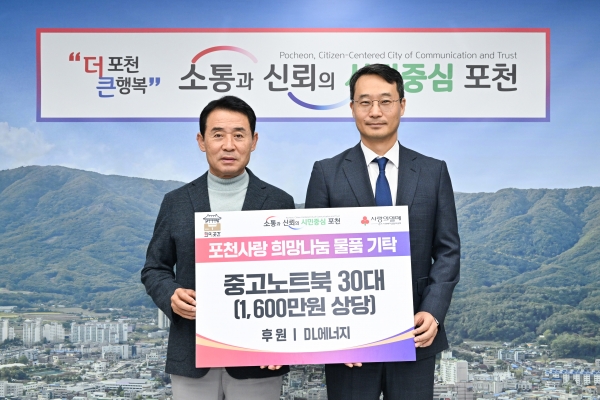 [금요저널] 포천시는 지난 12일 DL에너지가 경기사회복지공동모금회를 통해 이웃돕기 후원 물품으로 1,600만원 상당의 중고노트북 30대를 기탁했다고 밝혔다.
