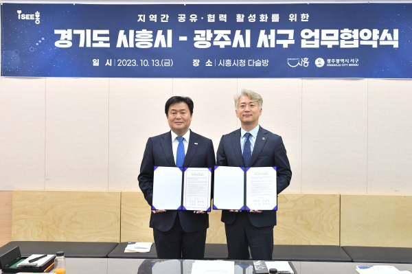 [금요저널] 시흥시가 광주광역시 서구청과 함께 지역 상생 및 시민 편익 증진을 위한 업무협약을 체결했다.