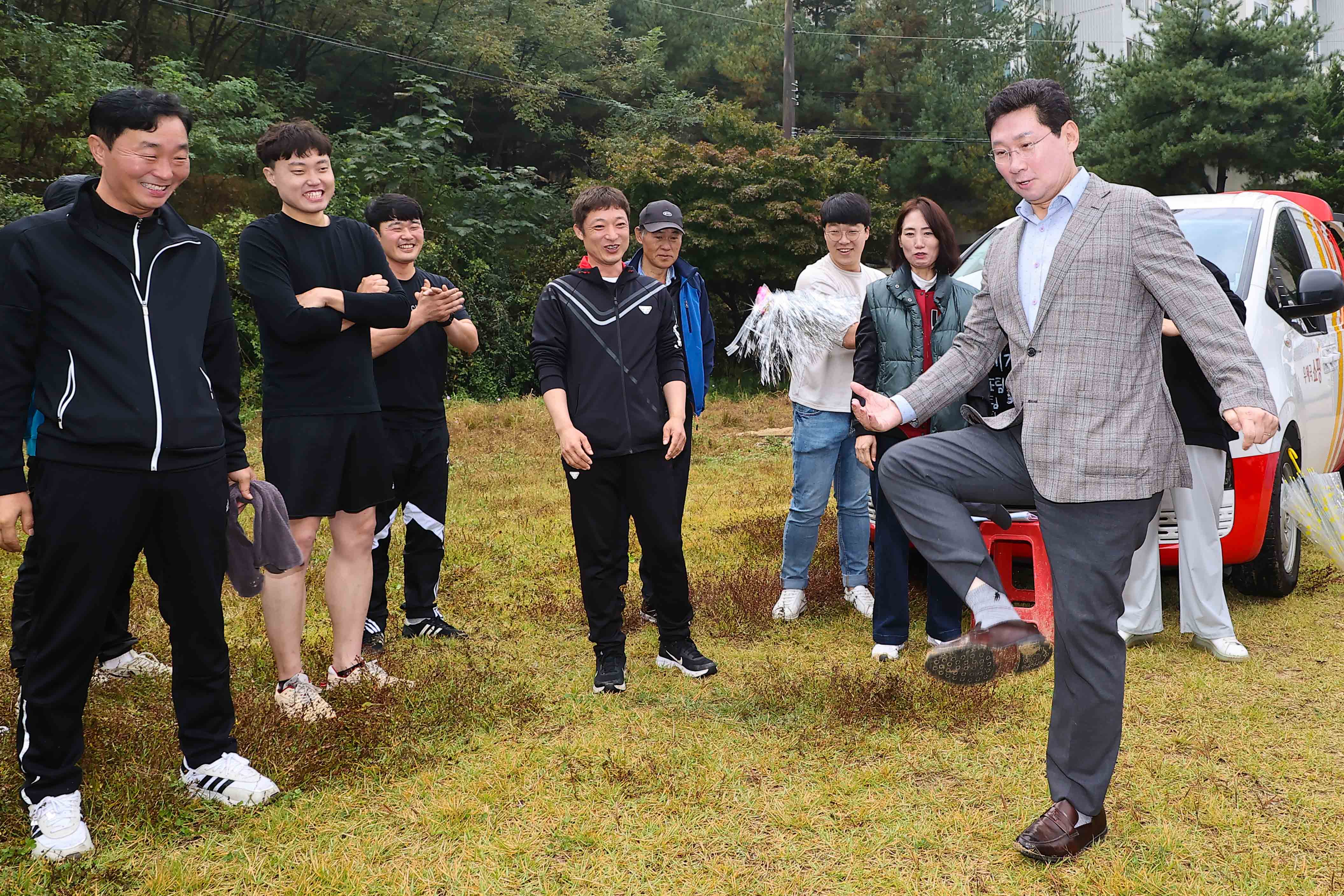 행사장 한쪽에서 둥글게 모여 제기를 차던 용인우체국 노동조합 부스에서 이 시장은 노동자들과 격의 없이 소통하고 선뜻 제기차기에도 동참하는 등 유쾌한 축제를 즐겼다.