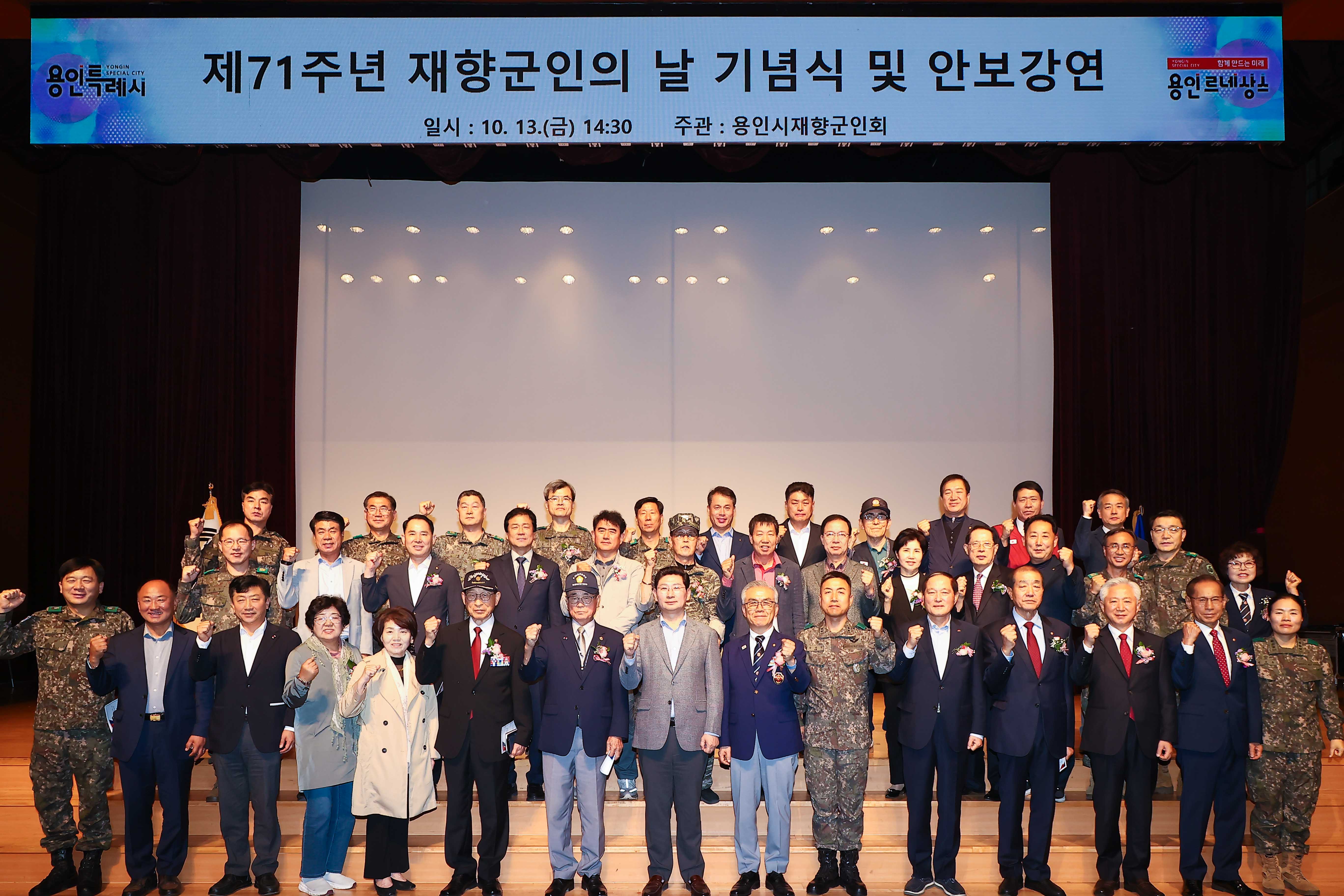 이상일 용인특례시장이 지난 13일 오후 시청 에이스홀에서 열린 제71주년 재향군인의 날 기념식에서 국가 안보를 위해 노력해 온 유공자에게 표창하고 안보 특강을 진행했다.