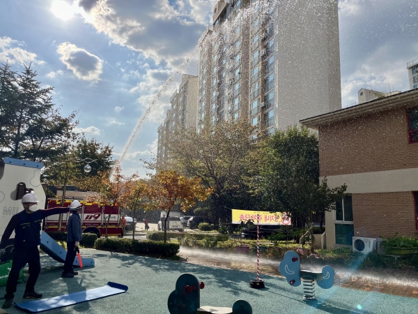 이날 훈련에서는 경로당, 어린이집에 화재가 발생한 것을 가정하고 화재대피훈련과 심폐소생술 교육프로그램을 진행했다.