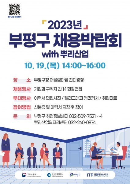 [금요저널] 부평구가 오는 19일 오후 2시 구청 어울림마당 잔디광장에서 ‘2023년 부평구 채용박람회 with 뿌리산업’을 개최한다.