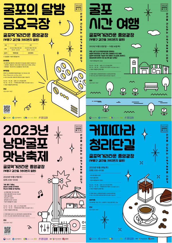 세부 행사는 굴포의 달밤 금요극장 2023년 낭만굴포 맛남축제 굴포 시간여행 커피따라 청리단길 등이다.