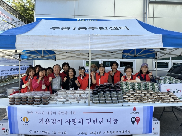 [금요저널] 부평구 부평1동 지역사회보장협의체는 지난 16일 가을을 맞아 홀몸어르신 50가구에 밑반찬을 전달하는 ‘가을맞이 사랑의 밑반찬 나눔’ 행사를 진행했다.