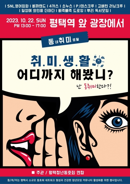 [금요저널] 평택 청년 동호회 연합은 오는 22일 평택역 앞 광장에서 ‘동취미’ 행사를 개최한다고 밝혔다.