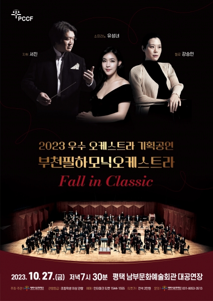 [금요저널] 평택시문화재단 은 10월 27일 금요일 저녁 7시 30분 평택 남부 문화예술회관 대공연장에서 2023 우수 오케스트라 기획공연 ‘부천필하모닉오케스트라 – Fall in Classic’ 을 선보인다.