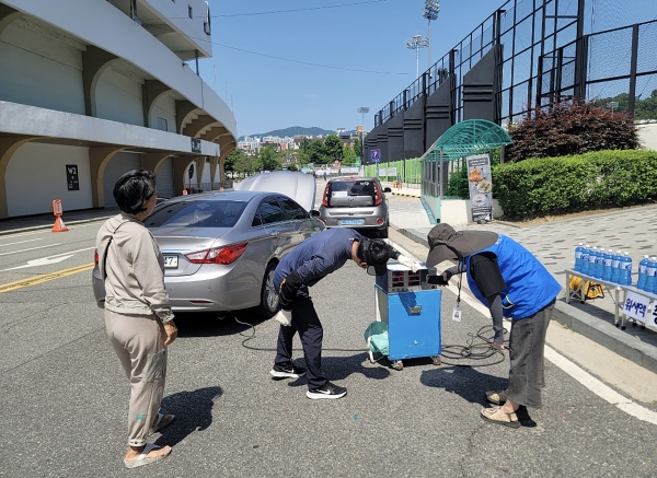 구는 이날 오후 2시~3시 성남종합운동장 하키장 앞 부지에 민관 합동 자동차 배출가스 점검 부스를 차려놓는다.