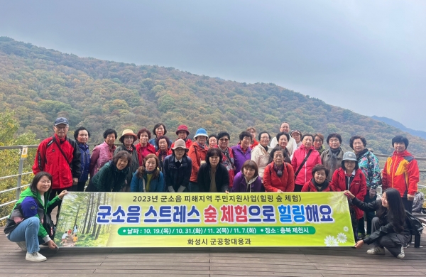 [금요저널] 화성시가 19일 군소음 피해지역 주민의 스트레스 해소를 위한 주민지원사업으로 마음 치유 힐링 숲 체험프로그램을 운영했다.