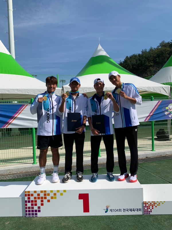 세종시 제104회 전국체전 남자일반부 단체전 시상식 <(왼쪽부터) 신산희, 현준하, 홍성찬, 남지성 선수>(사진=세종시)