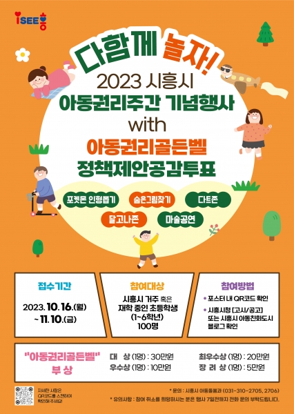 자세한 사항은 시흥시청 아동돌봄과 아동친화팀으로 문의하면 된다.