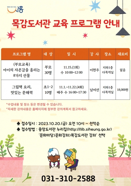 [금요저널] 시흥시 목감도서관은 11월 한 달간 ‘교육 프로그램’을 운영한다.