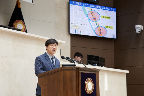 [금요저널] 용인특례시의회 김병민 의원은 19일 제276회 임시회 제2차 본회의 5분 자유발언을 통해 플랫폼시티의 도로 개선을 요청하고 마북동 전선지중화사업의 문제점 지적을 지적했다.