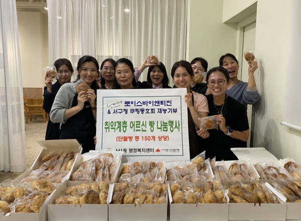 김미진 로이스바이앤티진 대표는 “서구청 쿠킹동호회와 함께 뜻깊은 시간을 보낼 수 있어 뿌듯하다. 작은 정성이지만 어르신들에게 저희의 따뜻한 마음이 빵과 함께 전달되길 바란다”고 했다.