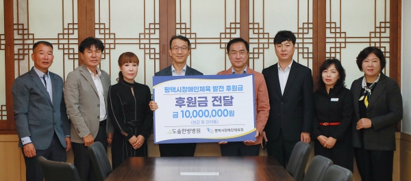 [금요저널] 평택시는 평택도솔한방병원이 장애인체육 활성화를 위해 매년 1000만원을 지원한다고 밝혔다.