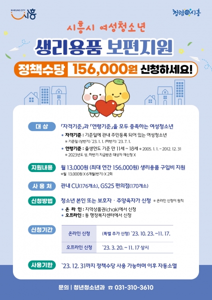 대상 청소년은 시흥시 내 주민등록을 둔 만 11세~18세 여성청소년이 해당된다.