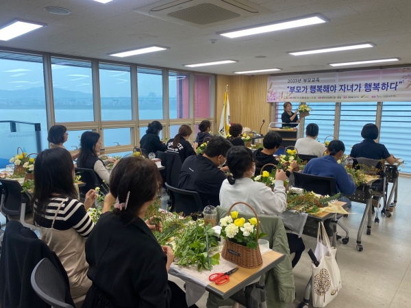 교육을 진행한 원예심리상담사 송미자 강사는 부모의 스트레스 관리방법, 건강한 스트레스 해소방법으로 나만의 꽃바구니 만들기, 감정 조절 방법 알아보기를 주제로 프로그램을 진행했다.