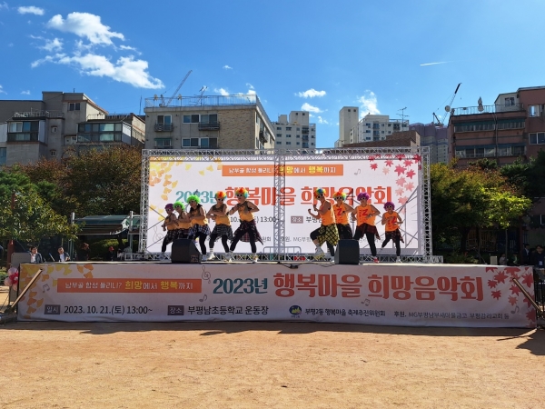 [금요저널] 부평2동 행복마을 축제추진위원회는 지난 21일 부평남초등학교 운동장에서 주민 500여명이 참석한 가운데 행복마을 희망음악회 ‘남부골 함성 들리니? 희망에서 행복까지’를 성공적으로 개최했다.