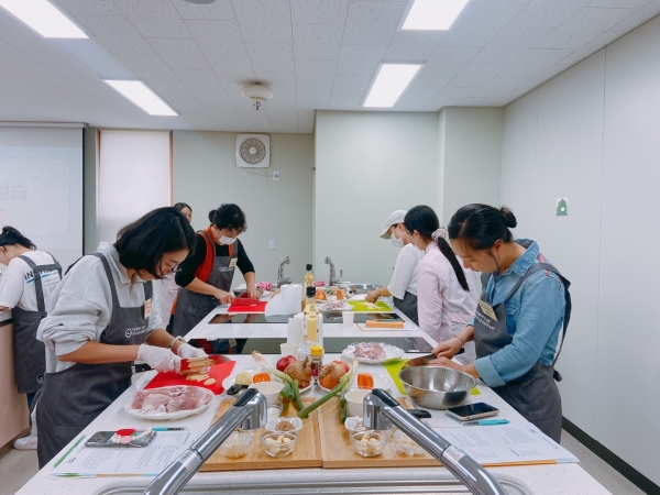 프로그램은 총 2회차로 구성해 1회 8명씩 총 16명의 부모가 참여했으며 1회차에는 돼지고기 무수분 수육과 치즈 감자채 전을, 2회차에는 소고기 가지밥과 들깨 순두부국을 요리했다.