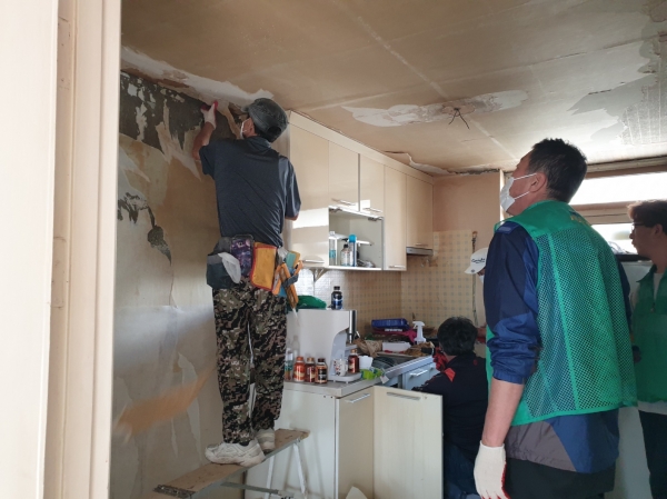 해당 가정은 복지사각지대로 발굴되어 사례관리 중인 모자 2인 세대로 도배, 장판, 전등 교체, 베란다 유리 교체, 싱크대 배수관 호스 교체, 문틀 청소 등을 실시해 새집같이 깔끔하고 정돈된 집으로 개선했다.