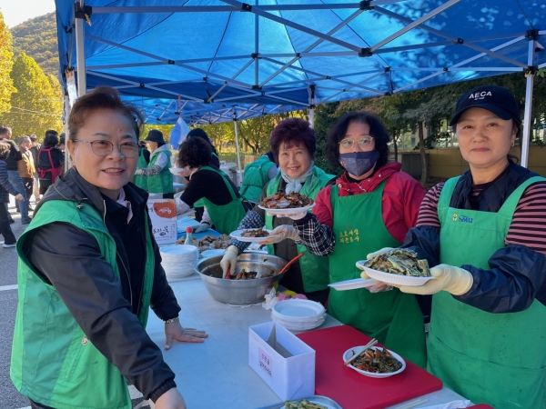 새마을부녀회는 바자회에서 잔치국수, 도토리묵 등 식음료를 팔았으며 방문객들이 국화, 호접난, 물엿 등 관내 생산품을 구매해 이웃 돕기에 동참할 수 있도록 했다.