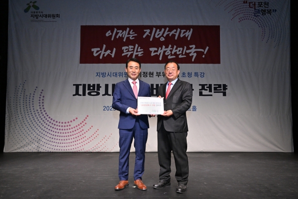 [금요저널] 포천시는 24일 포천반월아트홀에서 지난 7월 출범한 대통령 직속기관인 지방시대위원회 이정현 부위원장을 초청해 기회발전특구 지정을 위한 ‘지방시대의 비전과 전략’이라는 주제로 특강을 진행했다.