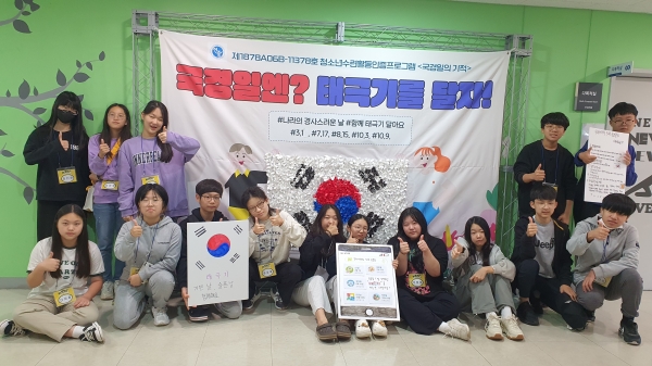 청소년수련활동인증을 받은 이번 활동은 15명 청소년이 참여해 태극기의 역사와 의미를 배우고 총 948개의 바람개비를 접어 태극기를 완성했다.